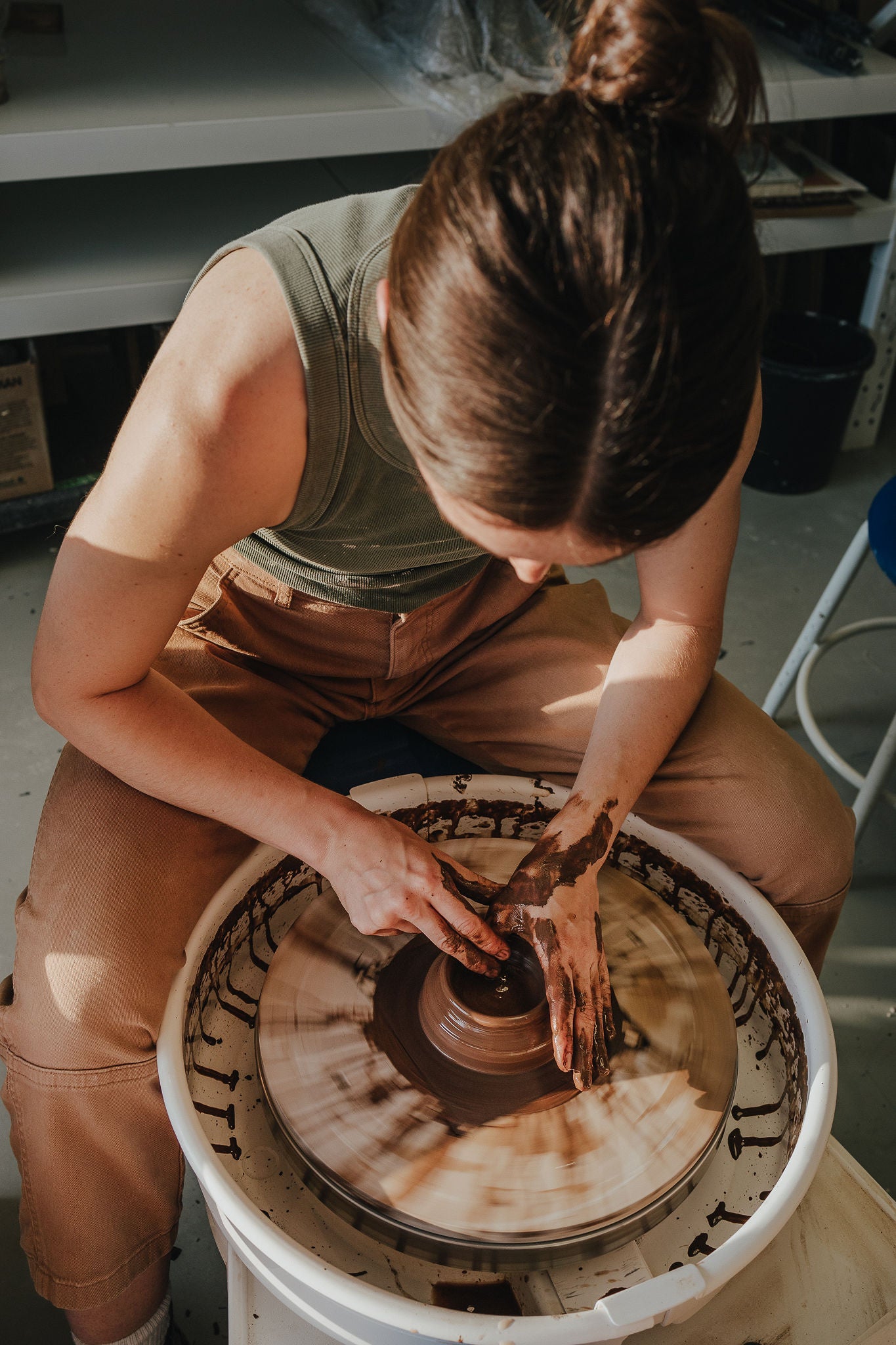 Beginners will learn the basics of throwing clay on a pottery wheel: how to handle and center clay on the wheel, practice creating cylinders to shape bowls and cups and how to trim and prep work for firing. Intermediate students will learn to handle, make a teapot and start throwing larger amounts of clay. Each student will be met at their own level.
