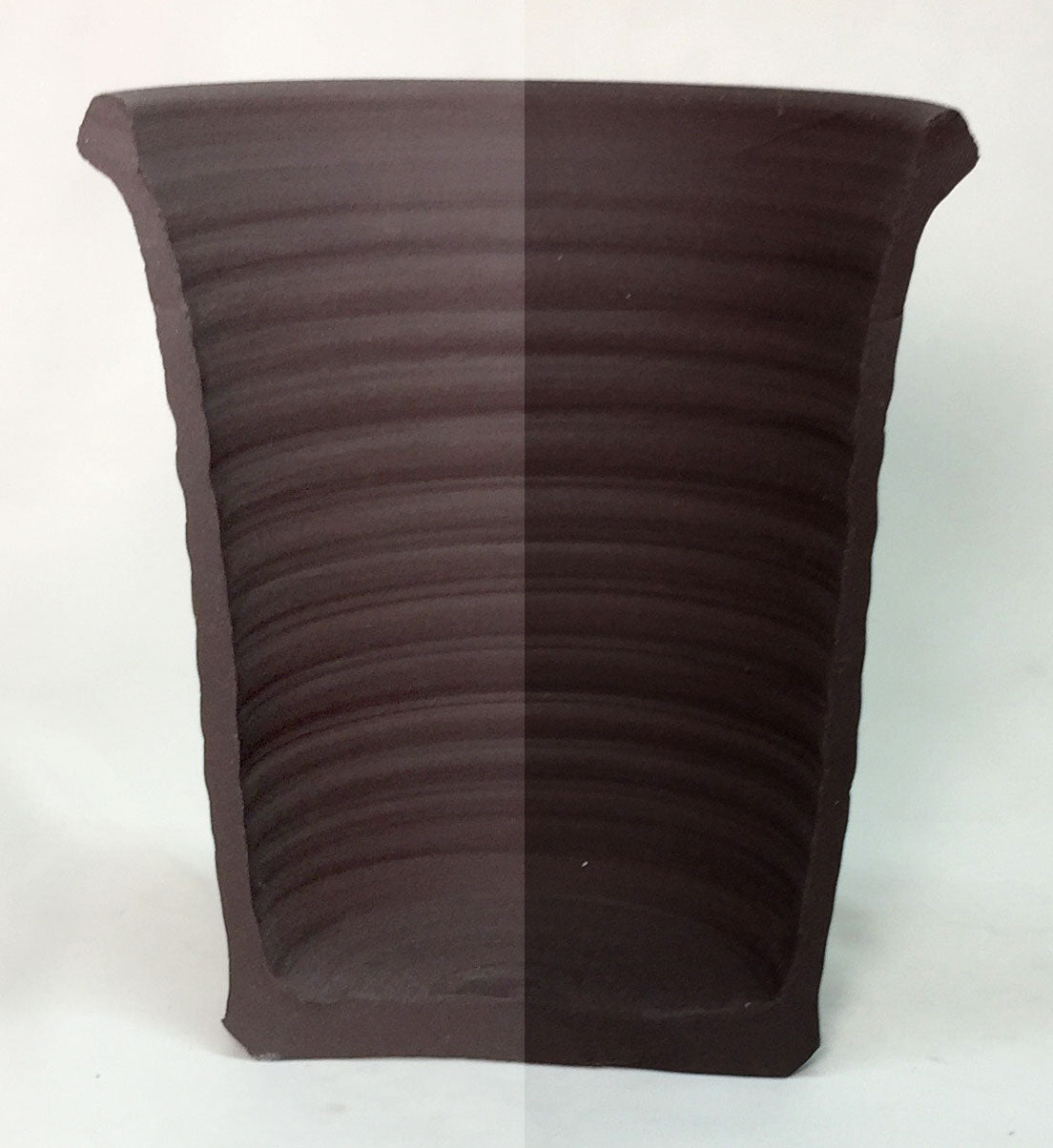 Mid-Fire Coffee Black is made from a base similar to H550 with a 10% addition of burnt umber (a calcined naturally occurring pigmented clay). The umber colors the fired body and matures it enough for functionalware at cone 6. Coffee Clay is smooth and easy-to-throw. Fires to a dark rich brown. Shrinkage around 14%